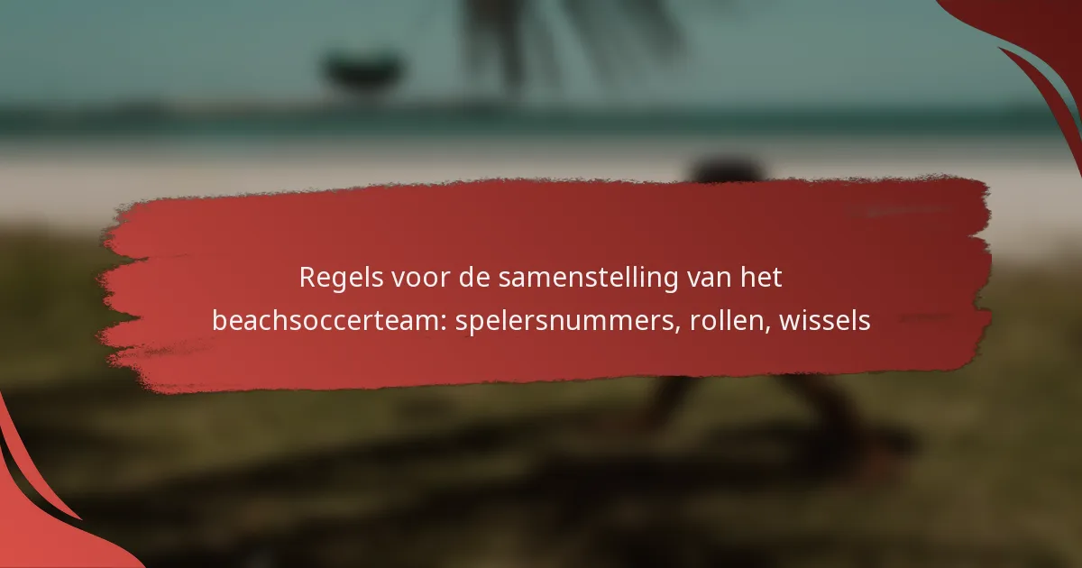 Beach soccerteams worden beheerst door specifieke regels met betrekking tot het aantal spelers, rollen en wissels, die essentieel zijn voor een effectieve teambeheer. Elk team heeft doorgaans een diverse set van rollen die bijdragen aan de algehele strategie, terwijl onbeperkte wissels zorgen voor spelersrotatie om de prestaties te verbeteren en vermoeidheid te beheersen. Het begrijpen van deze regels is cruciaal voor het optimaliseren van teamdynamiek en de effectiviteit van het spel.